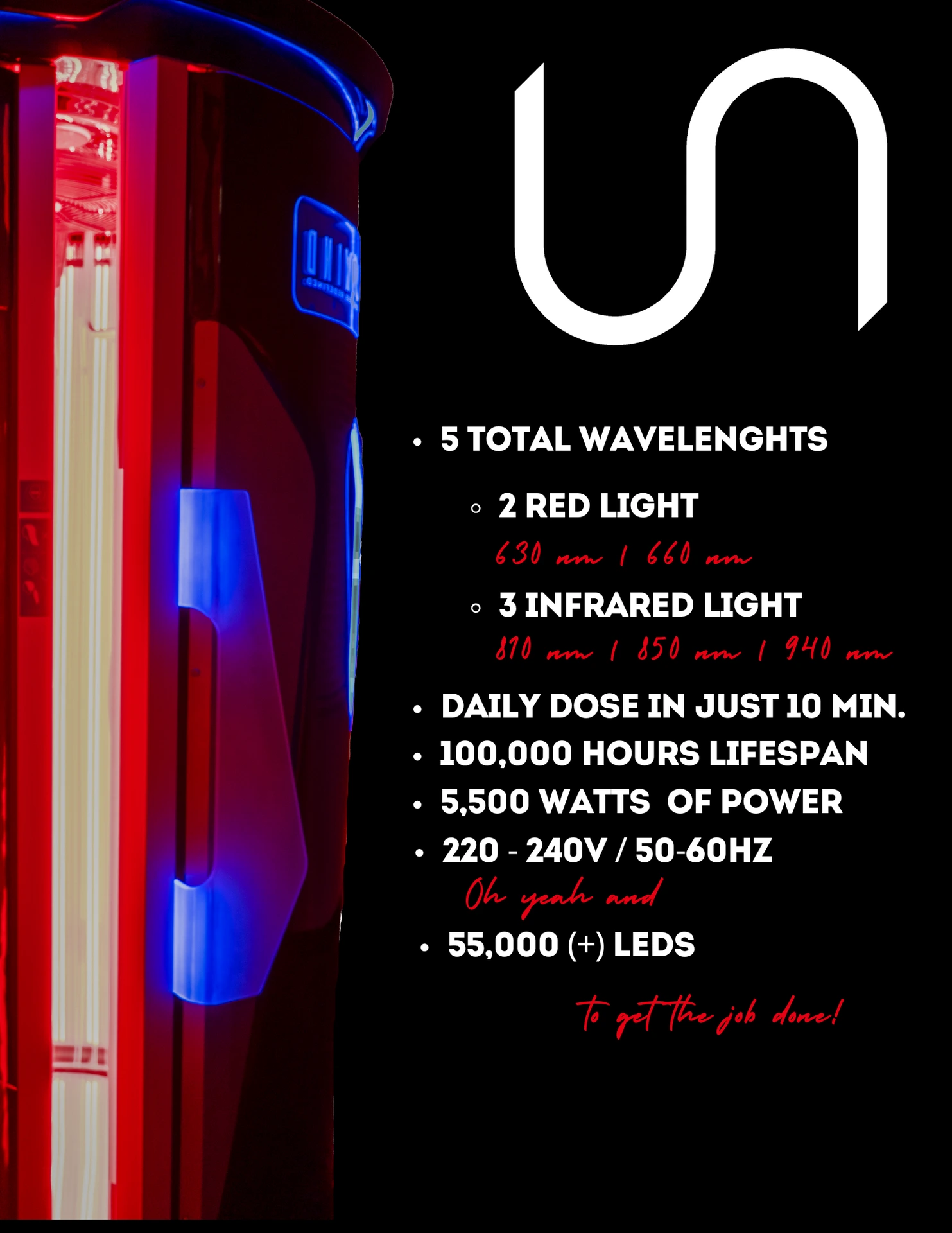 (No hanging wires, no door hooks, no wobbly red light panels on roller stands. Just clinical immersion & results.
